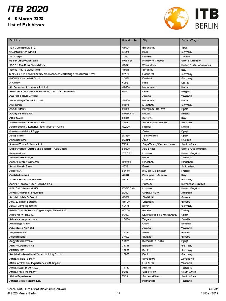 List Of Exhibitors Tourism Service Industries